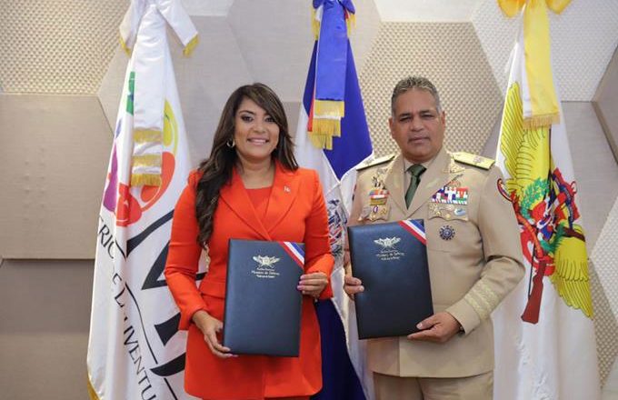 Mediante el convenio, firmado por el teniente general Rubén D. Paulino Sem y la ministra Robiamny Balcácer, se amplían las oportunidades de estudios para jóvenes egresados del Programa de Formación en Valores y Disciplina Militar que imparte la Dirección General del Servicio Militar Voluntario en el país.